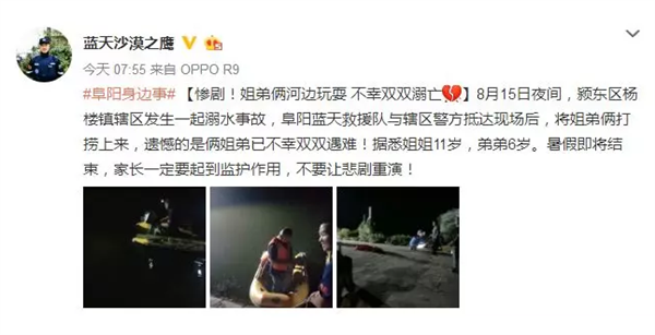 阜阳又一对姐弟溺水身亡!姐姐为救弟弟落水!一个11岁,一个6岁!