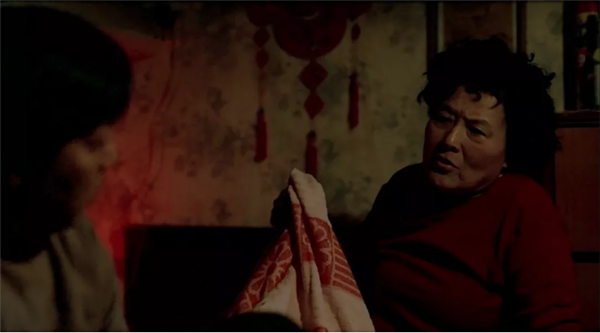 影片尾声,阜阳保姆们上了破旧的公交,准备回乡返程。一位阿姨从远处跑来,操着方言让车上的同乡捎一个用红布包着的盒子回老家。是骨灰盒。