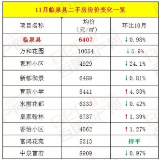 1、临泉县11月最新二手房整体房价6407元/㎡,环比10月下降0.98%,二手房房价居阜阳五县城第五!