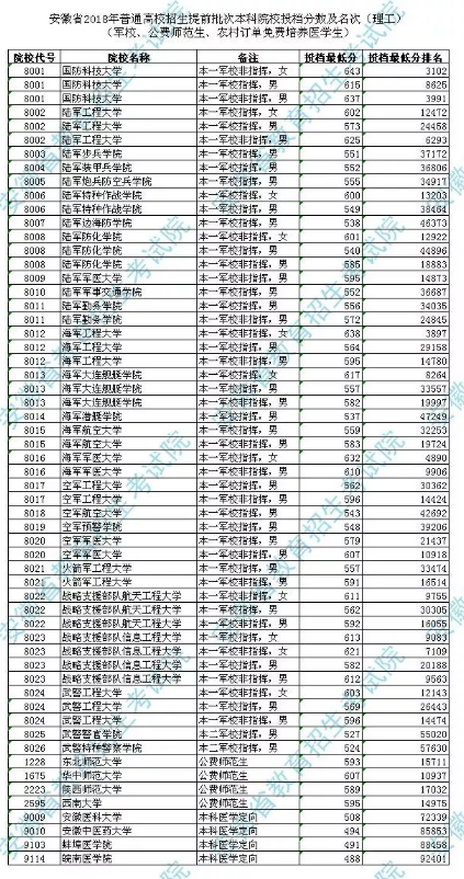 下面小编整理了安徽省2018年普通高校招生提前批次本科院校投档分数,赶紧一起来看看吧!不是今年高考的小伙伴们,也可看看分数线,和你当年相比差距大不大。